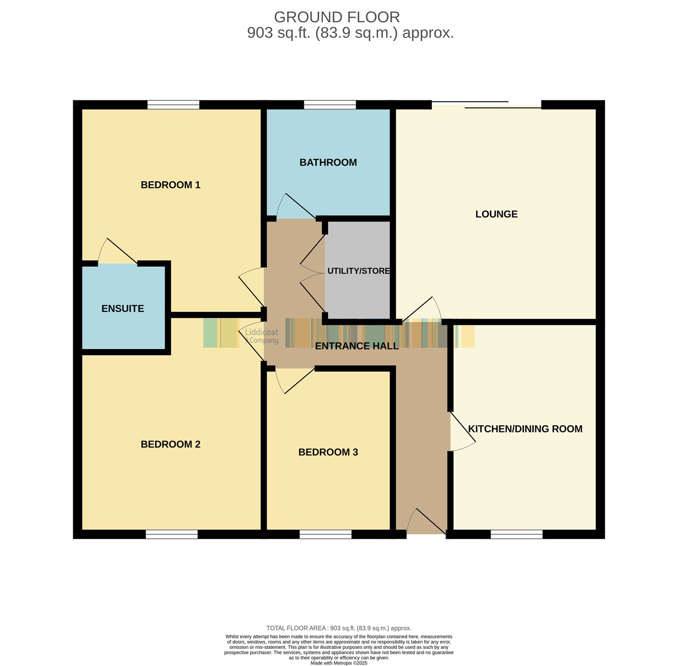 1.74m x 1.76m (5' 9" x 5' 9") Featuring a corner shower with mains-fed shower, low-level W.C., and a medicine cabinet for added storage. An extractor fan ensures ventilation, while the towel radiator provides warmth and comfort. The space is finished with half-tiled walls, adding a stylish, practical touch.