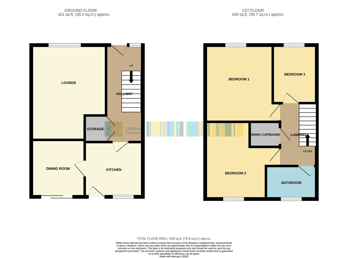 With a large airing cupboard, access via loft ladder to the roof void which is insulated and partly boarded with light.