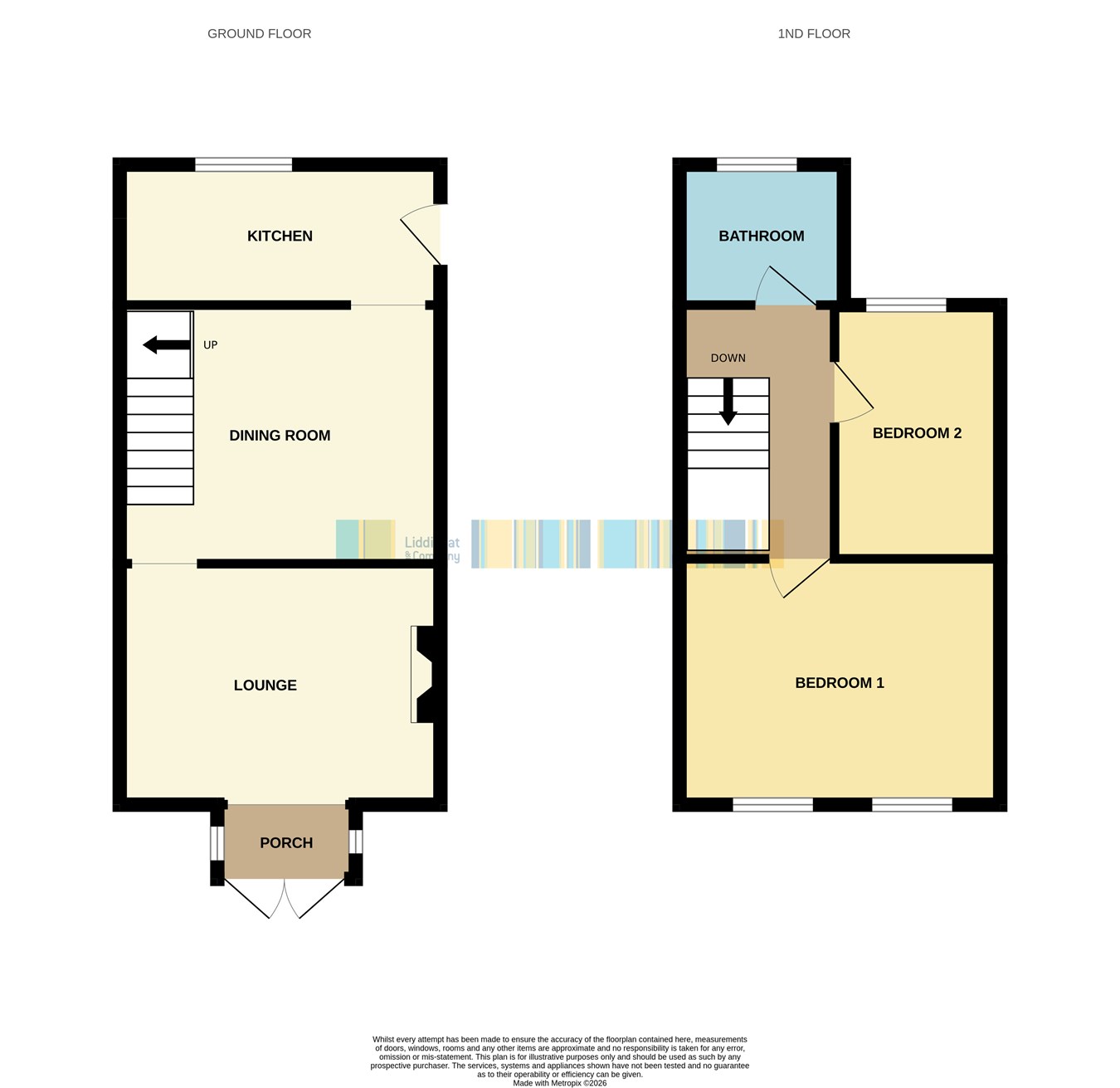 Inside, you'll find well-proportioned rooms including a cosy lounge, separate dining area, and a fully-equipped kitchen. Upstairs, two generous double bedrooms, alongside a stylish modern bathroom featuring a classic roll-top Victorian bath with a shower and mixer tap.