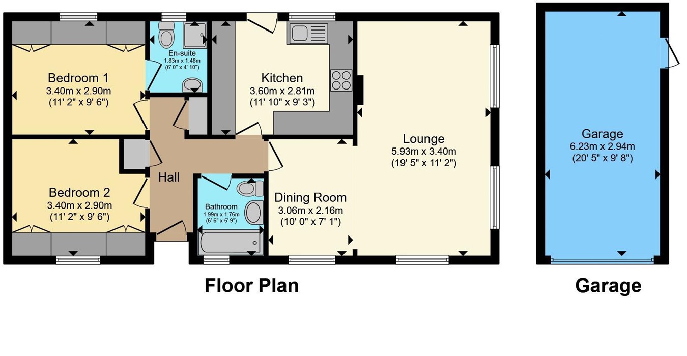 To the front of the property is an attractive open plan garden area. A pathway leads around one side of the home while to the other there is a driveway/Parking area which leads to the DETACHED GARAGE 20'5" x 9'8" Vehicle door to front, personnel door to side.