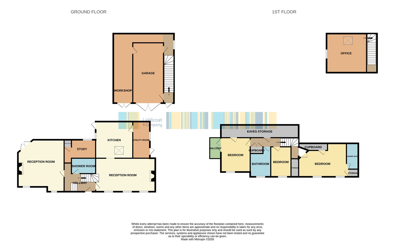 The property sits within a generous, mature garden and includes a detached double garage with a hobbies room/study above, offering potential for annexe or holiday accommodation (subject to consents), alongside a separate self-contained office ideal for home working.